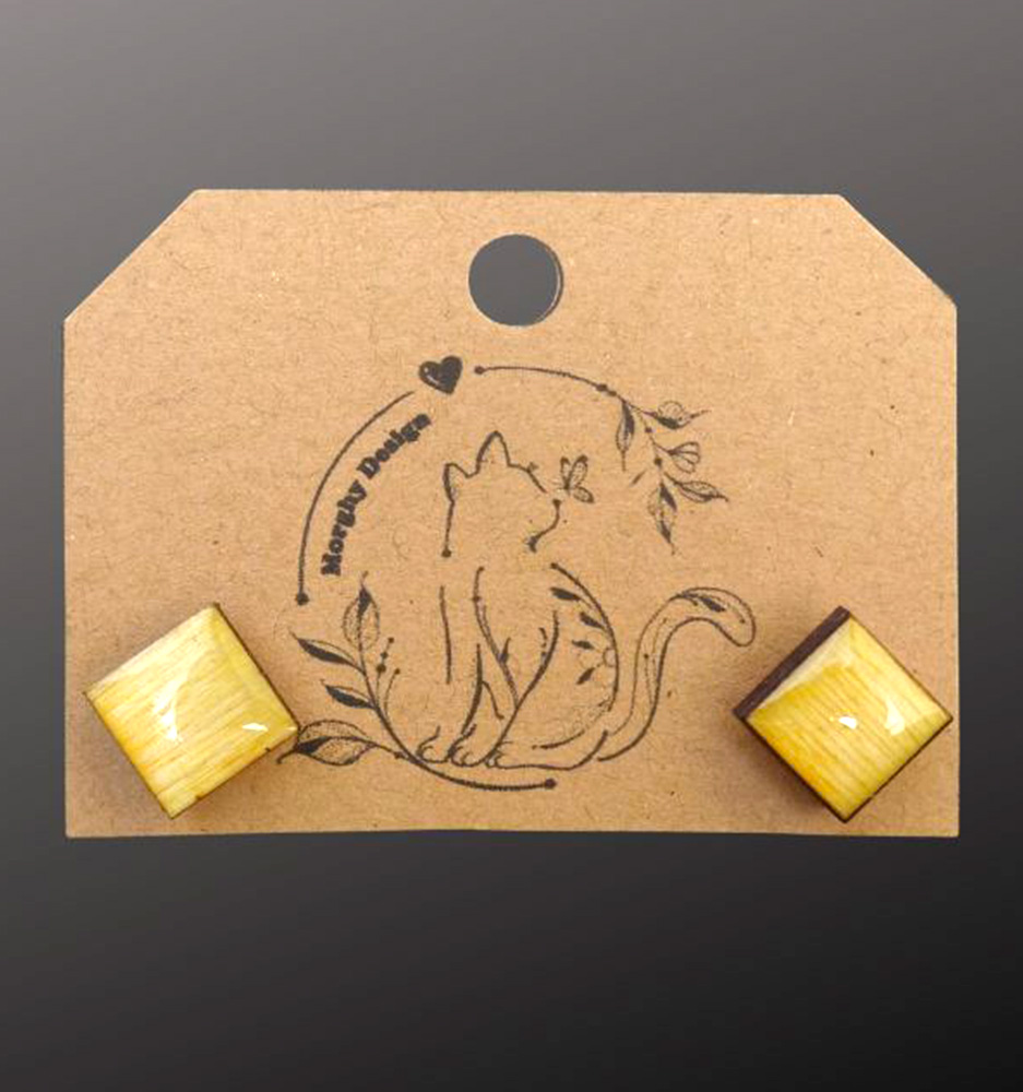 Incantevoli orecchini a bottone con base in legno da 3mm, abilmente decorati a mano con una finitura lucida per un tocco di eleganza artigianale.