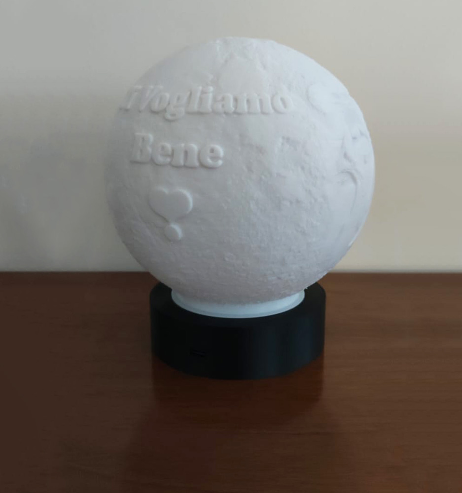 Questa litofania in PLA su sfera che rappresenta la luna è un'opera d'arte tecnologicamente avanzata e personalizzabile, che unisce la bellezza della luna con la moderna tecnologia della stampa 3D. La sua versatilità permette di adattarla ai gusti e alle preferenze individuali.