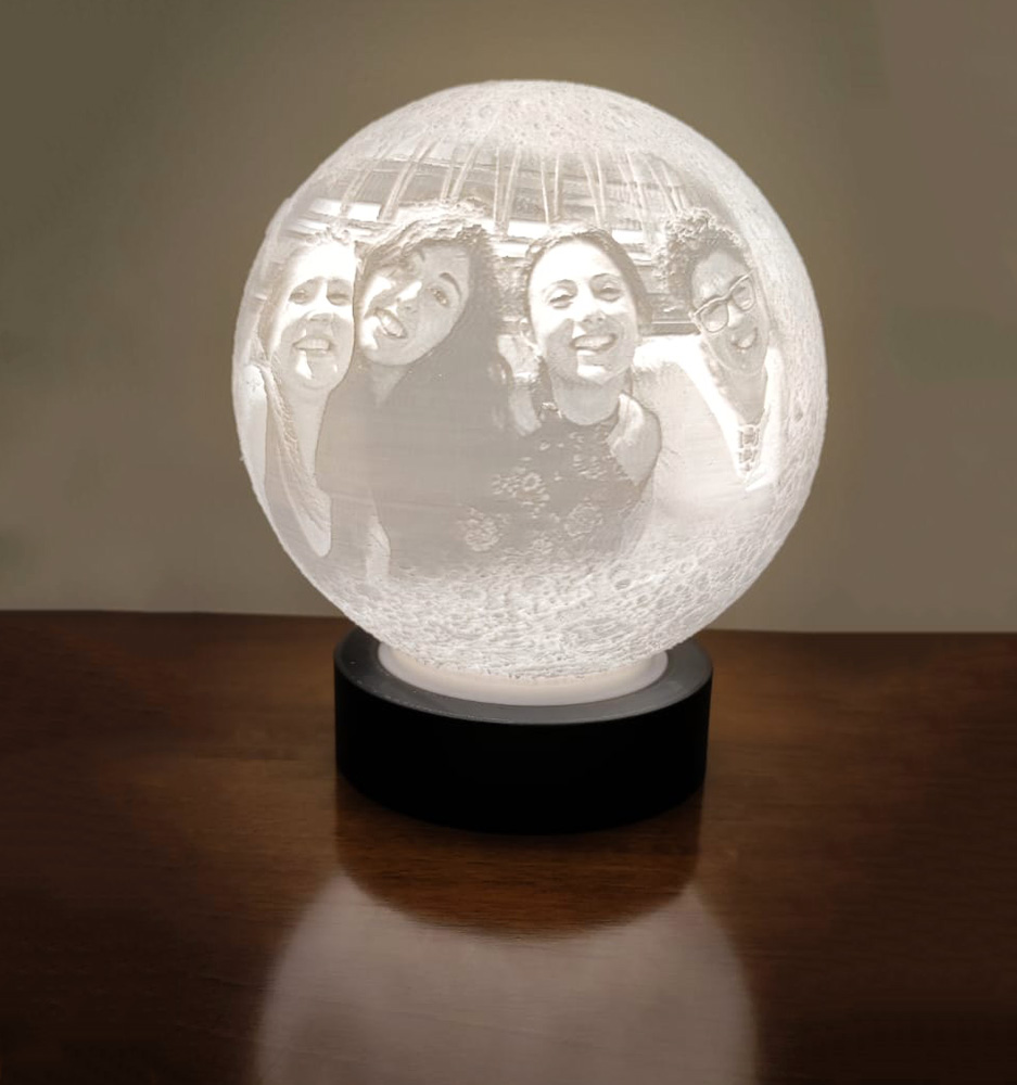 La vera magia avviene quando la luce brilla attraverso la sfera, grazie alla tecnica della litofania. È possibile personalizzare questa illuminazione inserendo foto, immagini o scritte sulla superficie della sfera. Quando la luce filtra attraverso il PLA, queste personalizzazioni emergono in modo delicato ed elegante, creando un effetto visivo mozzafiato.