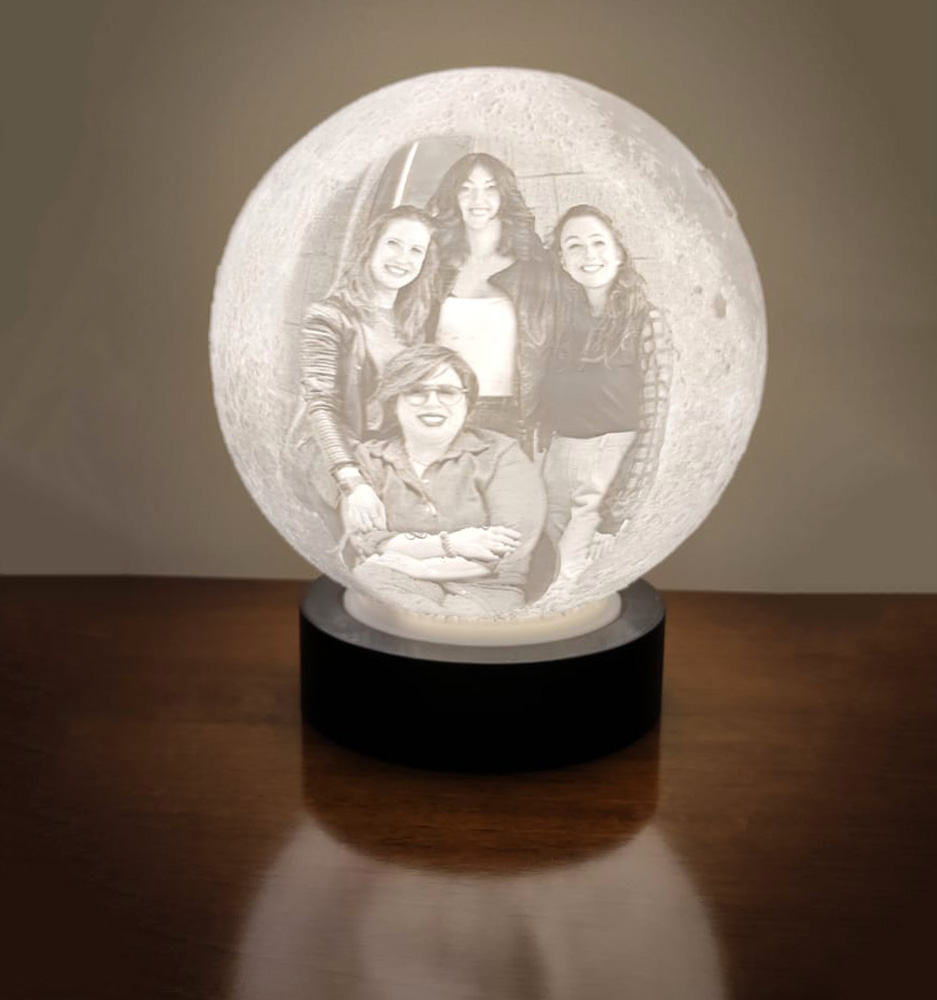 Lampada litofanica DIAMETRO 12 cm USB con 2 foto + 1 scritta