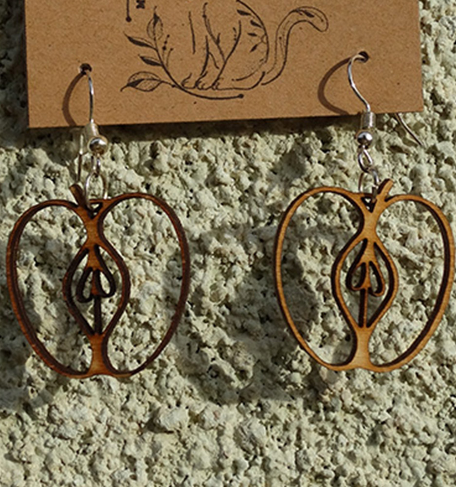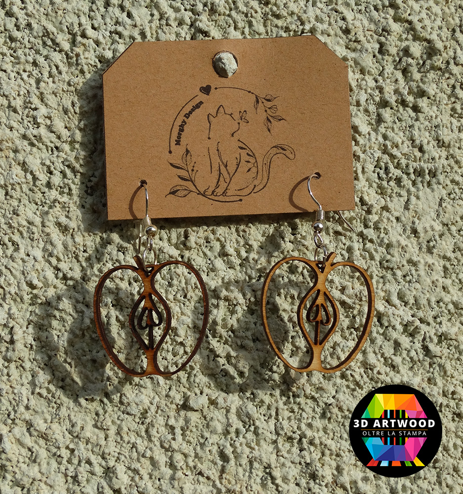 Paio di orecchini a forma di mela, tagliati con precisione tramite laser per una finitura impeccabile.
