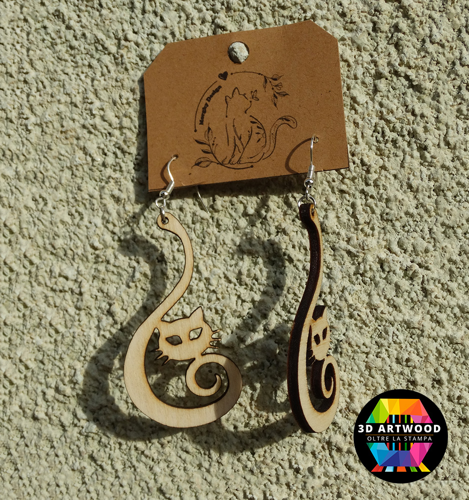 Affascinanti orecchini a forma di gatto, realizzati con maestria grazie al taglio laser per dettagli perfetti.