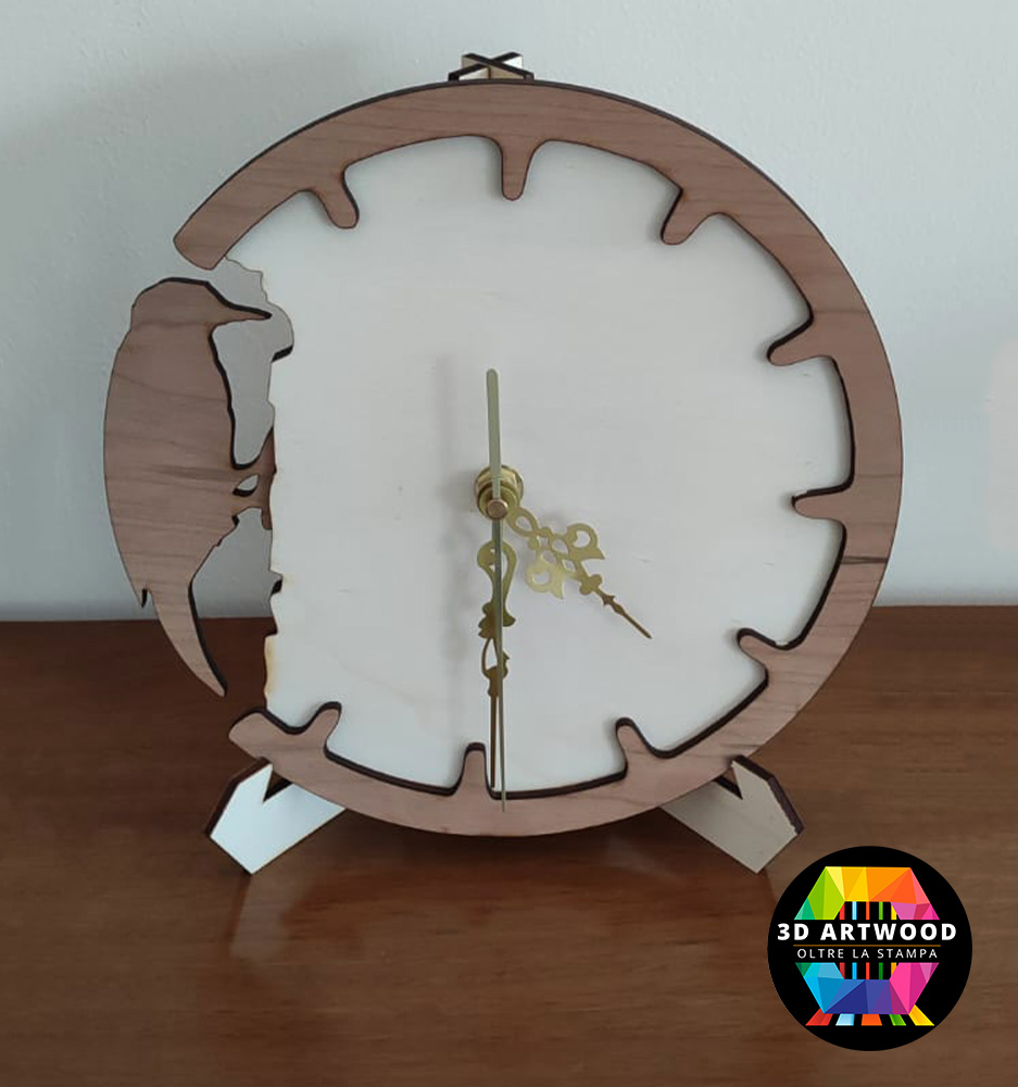 Il quadrante, situato al centro della cornice, rivela il naturale fascino del legno, conferendo all'oggetto un tocco organico e caldo.